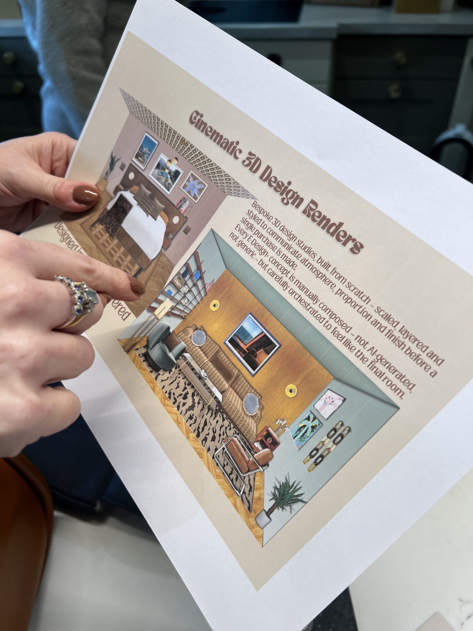 Her services range from focused clarity sessions to full interior design packages. This can include layout planning, visual concepts, guidance on materials and lighting, and considered styling. The aim is not simply to make a room look good, but to create a space that feels calm and personal to the people living there.